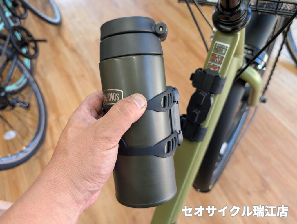 なかなか市販の保冷ボトルだとボトルケージに取り付けたりも難しく、