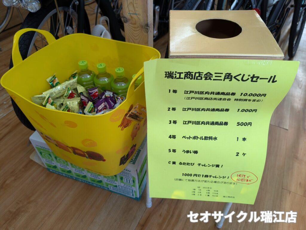 ただいま、瑞江商店会三角くじセール開催中♪